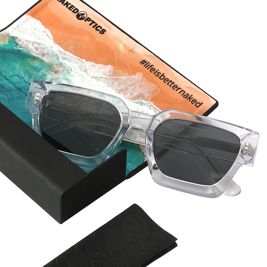- Durchsichtig-Grauer Rahmen mit schwarzen Gläsern (CAT.3)